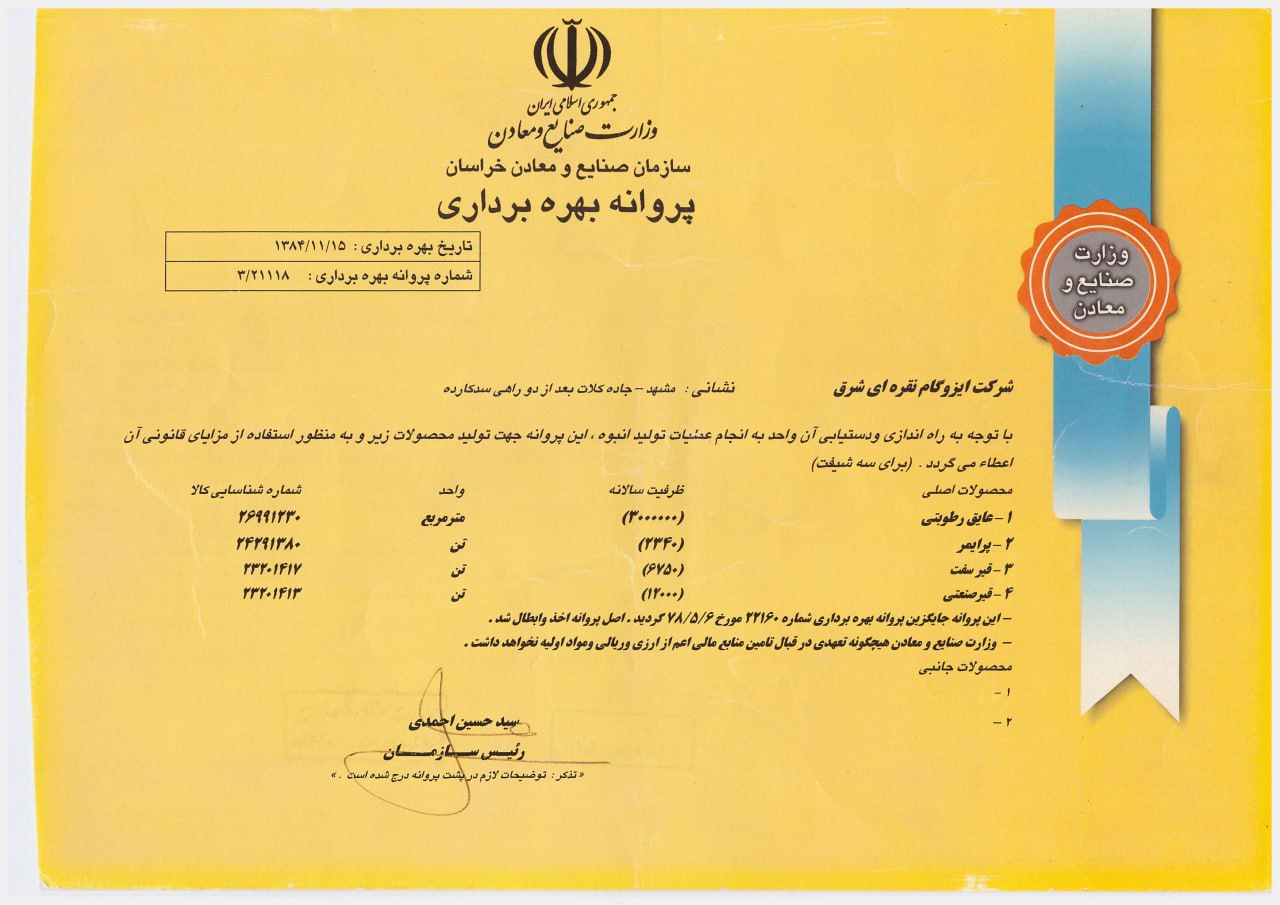 شرکت تولیدی عایق رطوبتی نقره ای شرق با هدف تامین بخشی از نیازهای جامعه و همچنین کسب درآمد از کارآمدترین راه که همانا تولید و فرآوری می باشد توسط بخش خصوصی در سال 1382 تاسیس گردید.